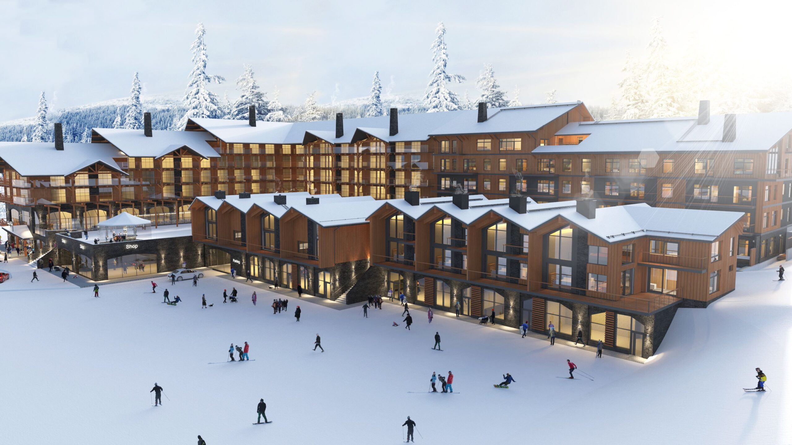 Lomahuoneistoista suurimmat kaksikerroksiset loft-huoneistot ovat pinta-alaltaan jopa 200 neliömetriä. Kokonaisuuteen kuuluu myös paritalo ja rivitalo. Kiinteistön alimpaan kerrokseen tulee pysäköintipaikat 47 autolle, ja niistä 15 paikkaa on varattu sähköautoille. Autopaikkojen lisäksi alimpaan kerrokseen tulee muun muassa ulkoiluväline-/suksi- ja monovarastot sekä irtaimistovarastoja.