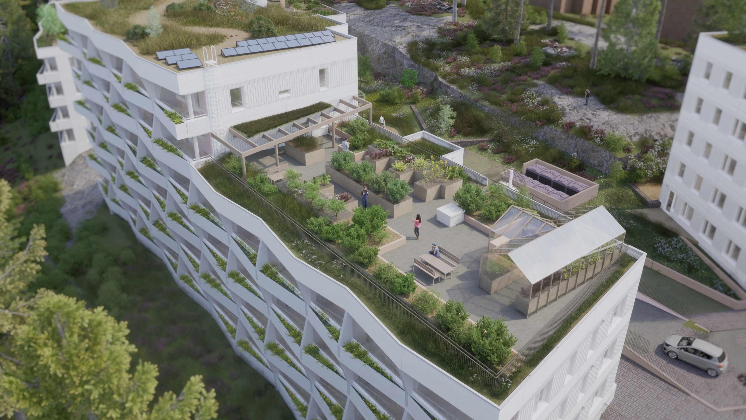 Kerrostalokortteli Helsingin Vuosaaressa yhdistää luonnon monimuotoisuuden, viherrakentamisen sekä akateemisen tutkimuksen.