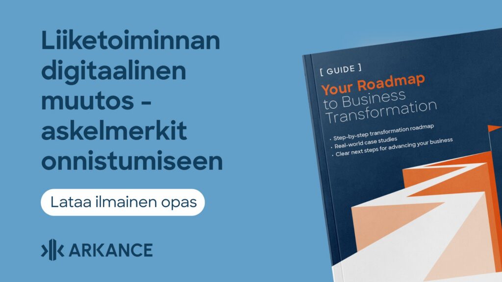 ARKANCEn oppaassa Digitaalisen muutoksen tiekartta korostetaan, että muutos lähtee nykytilanteen ymmärtämisestä. Kun tiedät, missä olet nyt ja minne haluat päästä, voit rakentaa projektin oikeille lähtökohdille. Vahva muutoskumppani auttaa sinua tässä työssä.