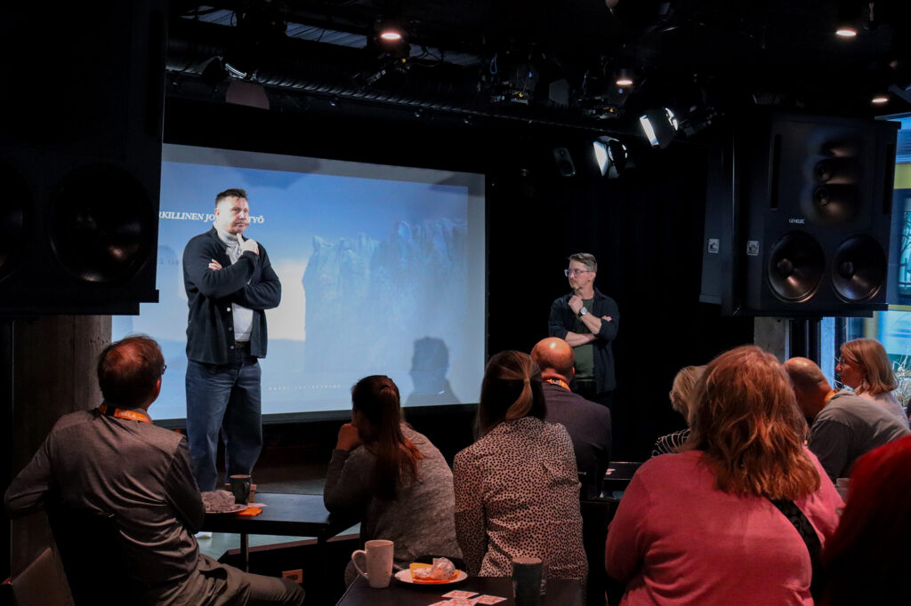 Gustafsbergin ja Ketosen esityksestä oli suora linkki aamiaistilaisuuden teemaan eli kiinteistö- ja rakennusalalla tahmeasti etenevään kulttuurimuutokseen.